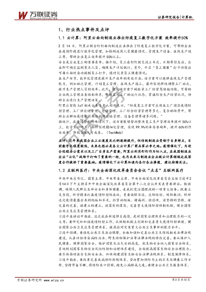 万联证券:计算机行业周观点:IT医疗获“点名”阿里云推复工方案.pdf