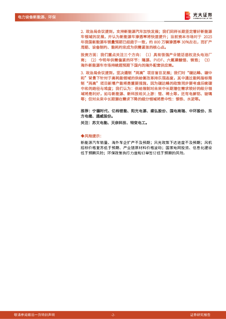光大证券:碳中和行业(电新+环保)周报:政治局会议:统筹有序做好双碳工作,支持新能源汽车加快发展.pdf