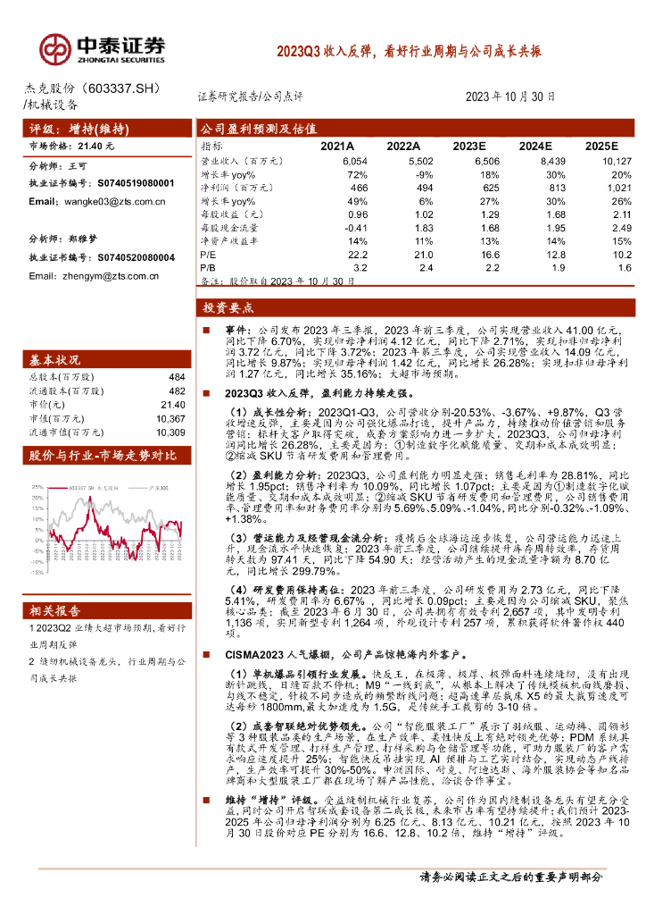 中泰证券:杰克股份(603337)-2023Q3收入反弹,看好行业周期与公司成长共振.pdf