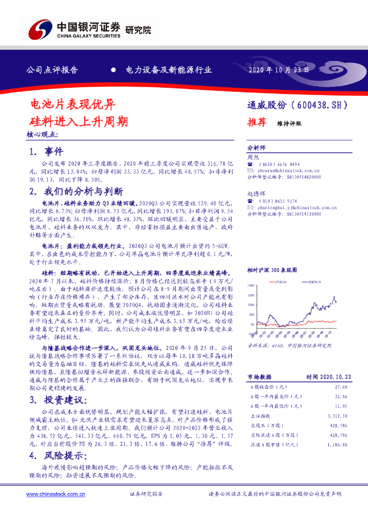 中国银河:通威股份(600438)-电池片表现优异 硅料进入上升周期.pdf