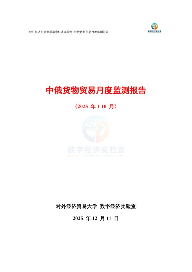 对外经济贸易大学:中俄货物贸易月度监测报告(2025年1-10月).pdf