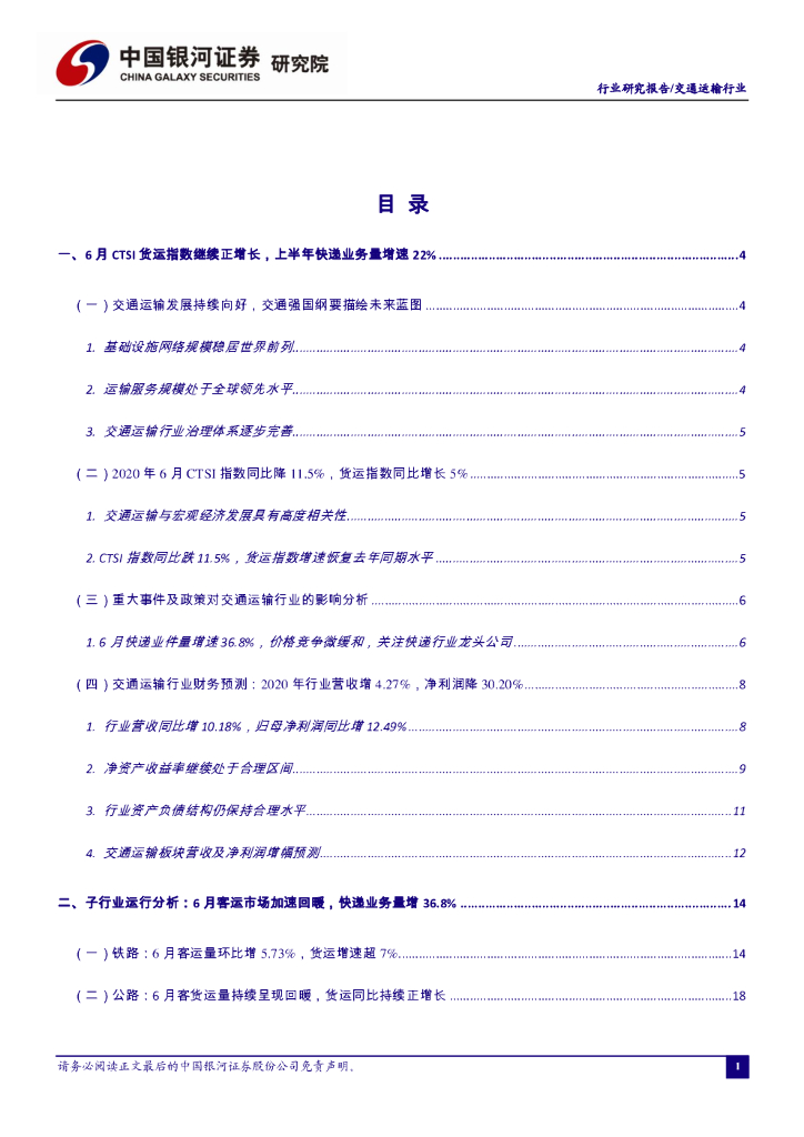 中国银河:交通运输2020年7月行业动态报告:推荐需求相对确定的快递板块,关注高速公路资产精细化管理的标的.pdf