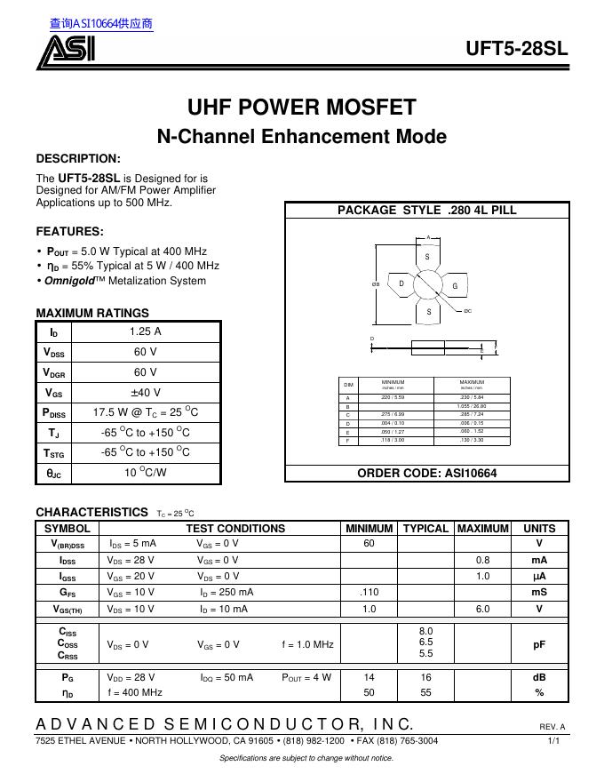 UHF POWER MOSFET N-Channel Enhancement Mode UFT5-28SL 数据手册.pdf