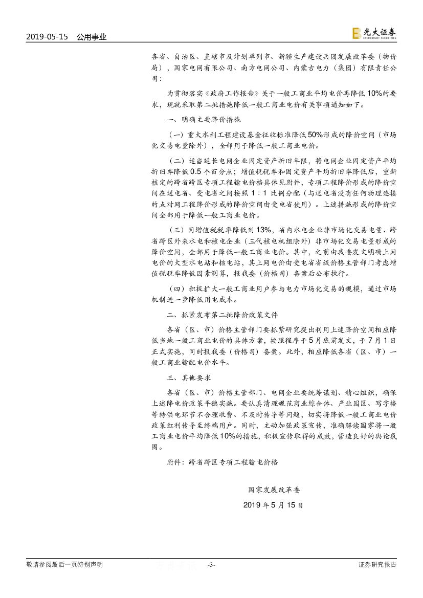 光大证券:公用事业行业简报:国家发改委关于降低一般工商业电价的通知点评-降电价第二批方案出炉,水电、核电增值税红利释放.pdf