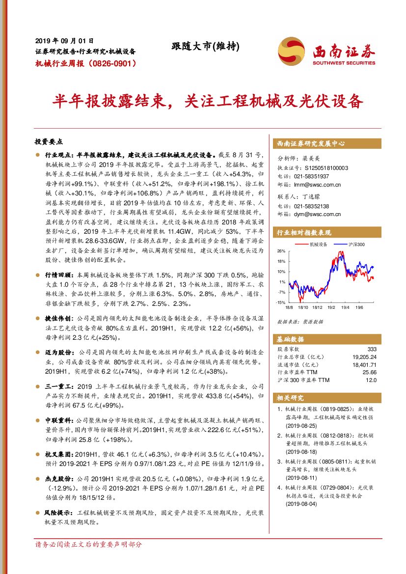 西南证券:机械行业周报:半年报披露结束,关注工程机械及光伏设备.pdf