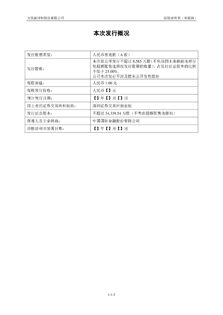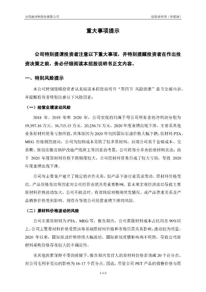 万凯新材料股份有限公司深交所创业板IPO上市招股说明书.pdf