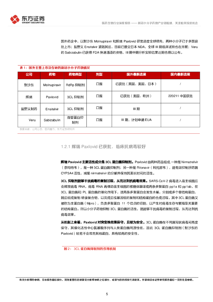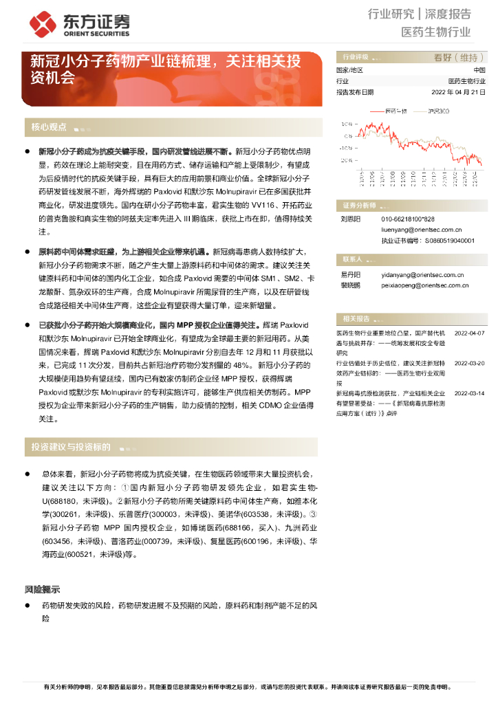 东方证券:医药生物行业:新冠小分子药物产业链梳理,关注相关投资机会.pdf
