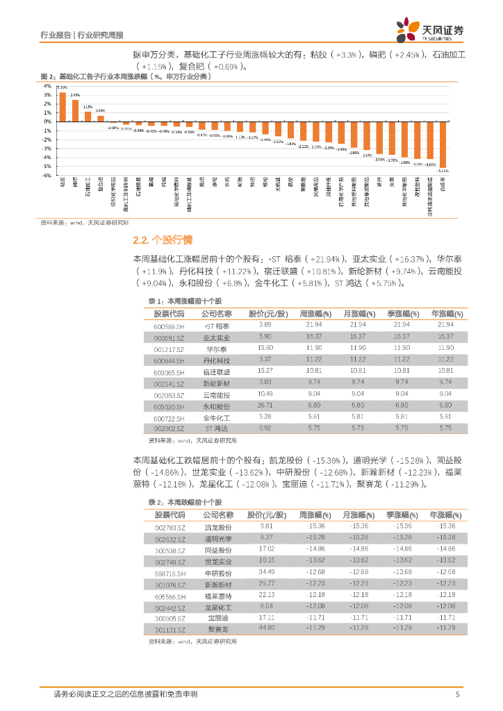 天风证券:基础化工行业研究周报:工信部等八部门联合印发《推进磷资源高效高值利用实施方案》,R134a、乙二醇价格上涨.pdf