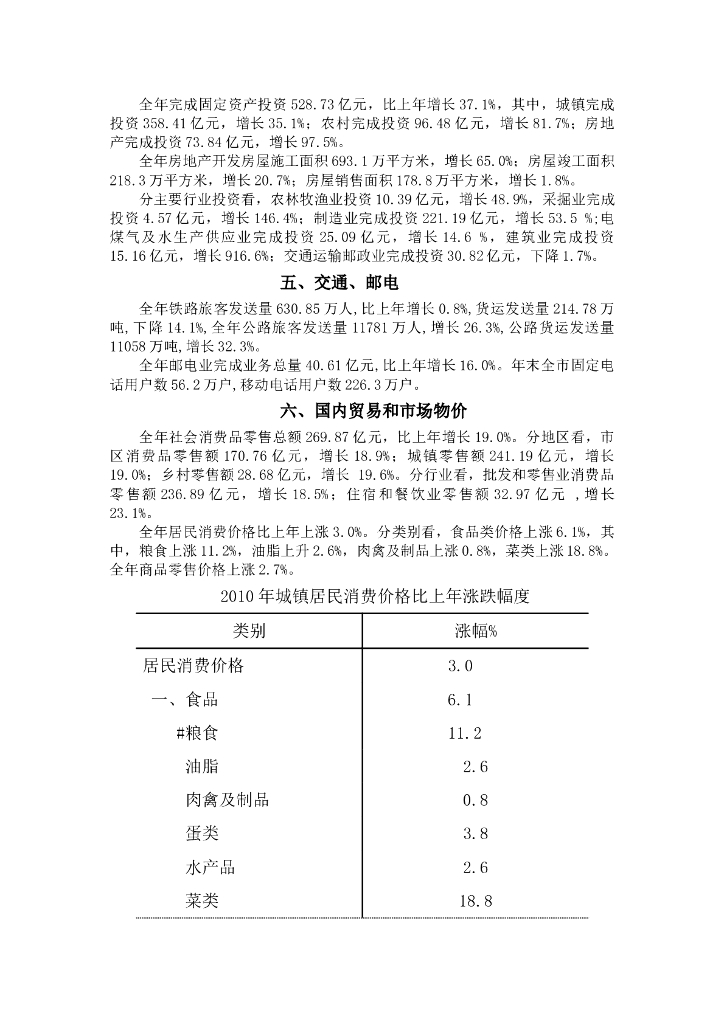 蚌埠市2010年国民经济和社会发展统计公报.doc