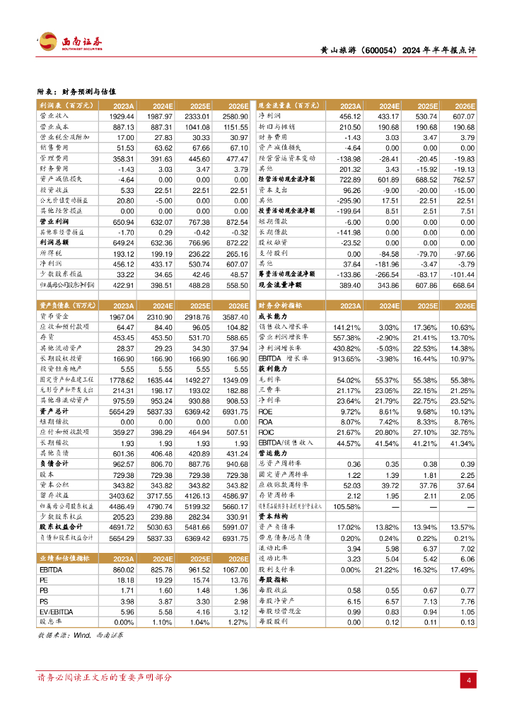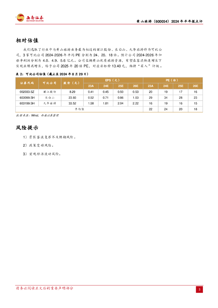 西南证券:黄山旅游(600054)-2024年半年报点评:所得税增加致使利润承压,期待后续客流催化.pdf