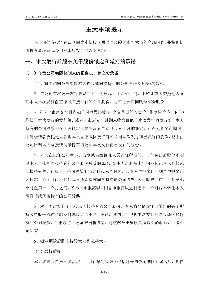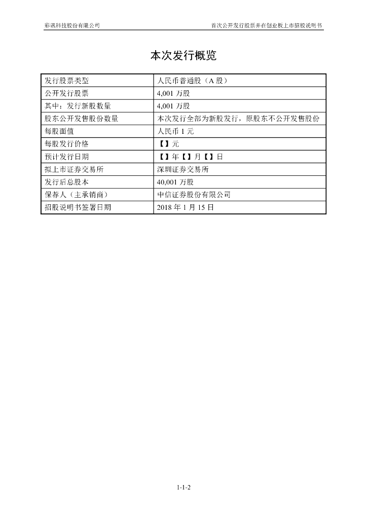 彩讯科技股份有限公司深交所创业板IPO上市招股说明书.pdf