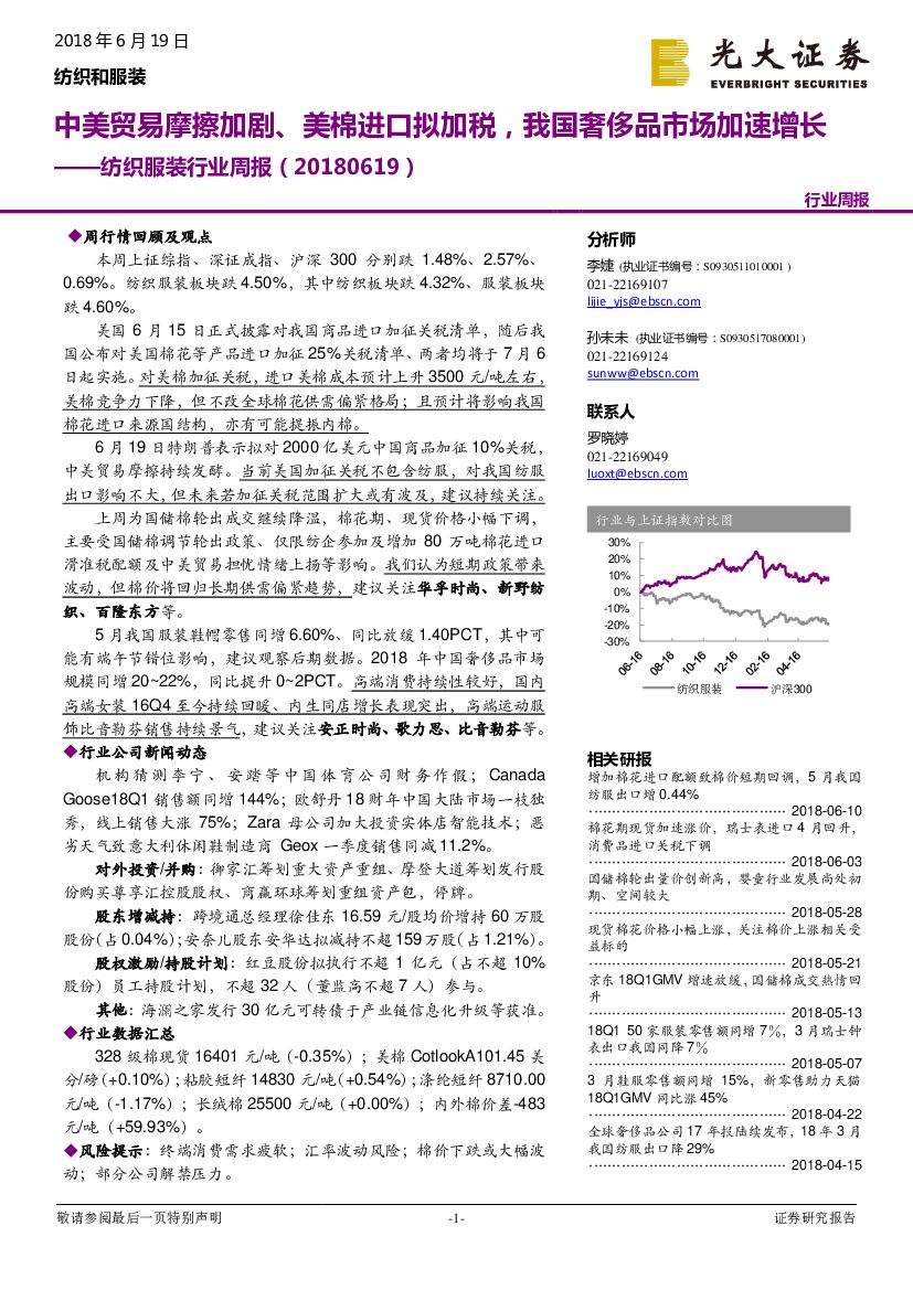 光大证券:纺织服装行业周报:中美贸易摩擦加剧、美棉进口拟加税,我国奢侈品市场加速增长.pdf