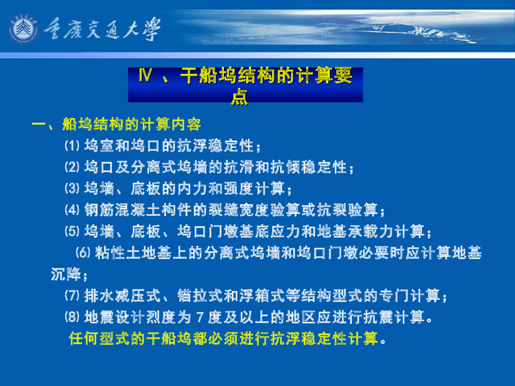《港口水工建筑物》教学课件-船坞的构造要求;船坞结构的计算要点.pdf