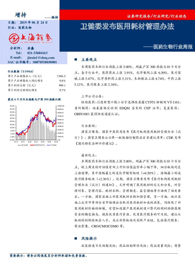 上海证券:医药生物行业周报:卫健委发布医用耗材管理办法.pdf