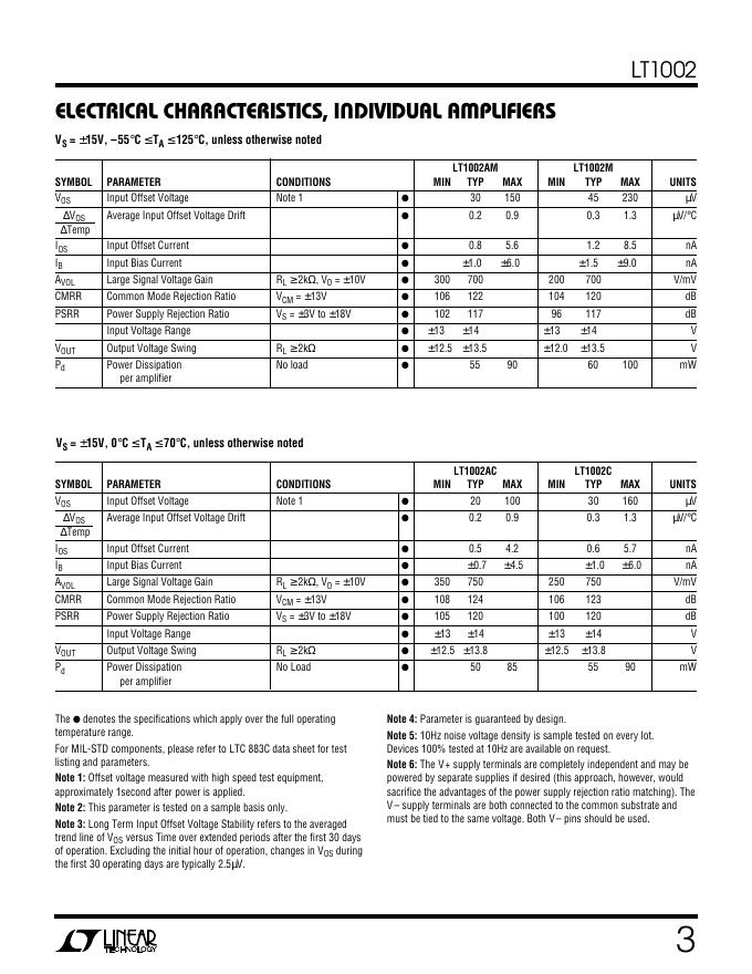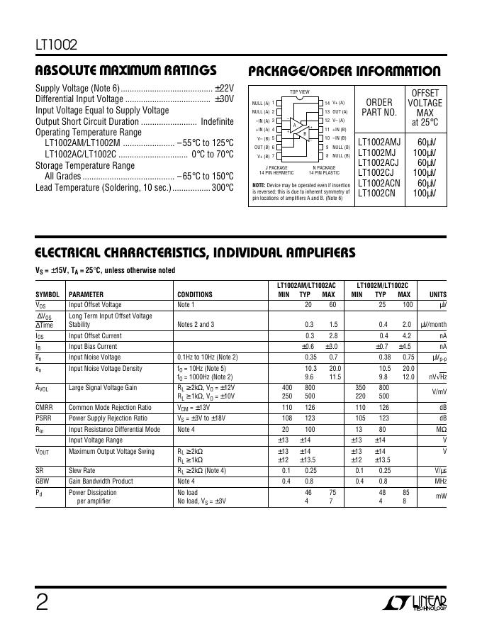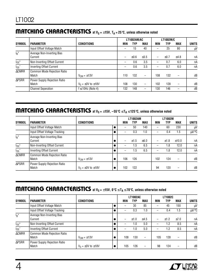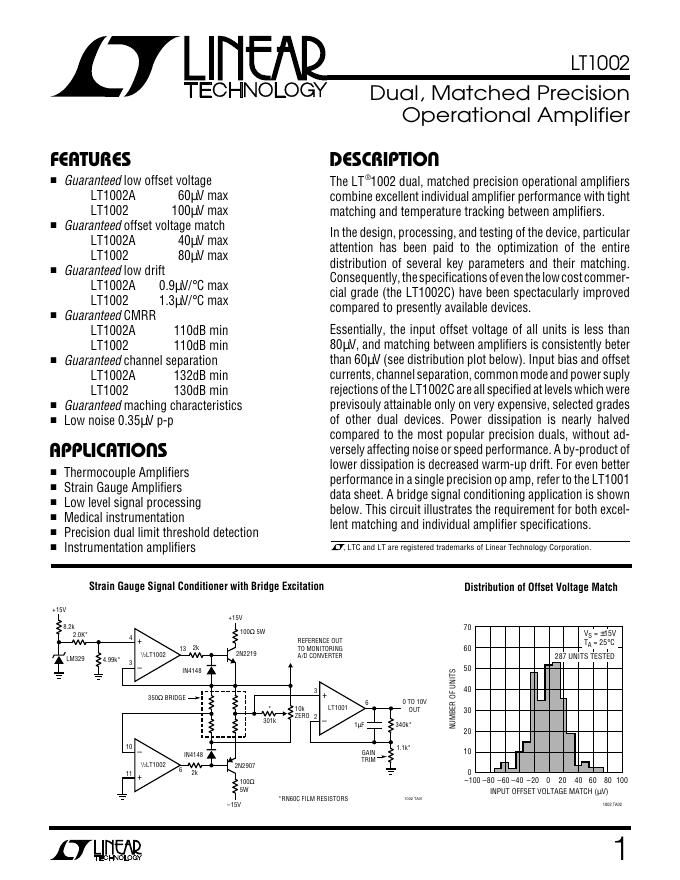 LINEAR LT1002 Dual, Matched Precision Operational Amplifier 数据手册.pdf