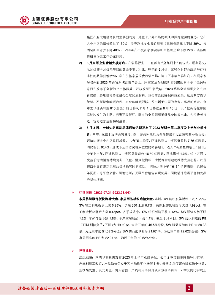 山西证券:纺织服装行业周报:国际运动品牌23Q2业绩梳理,Adidas及Deckers上调收入指引.pdf