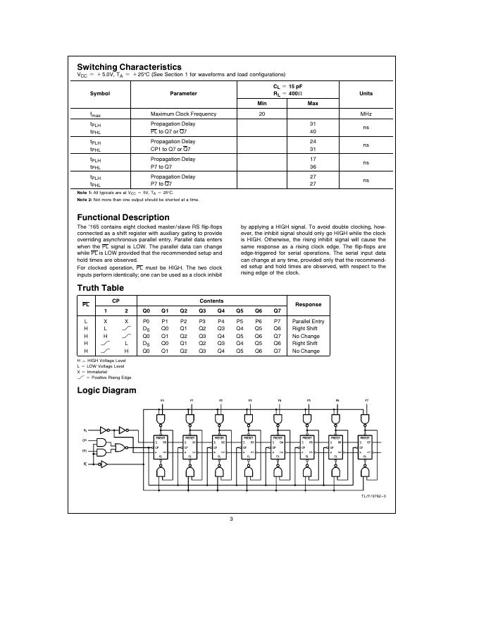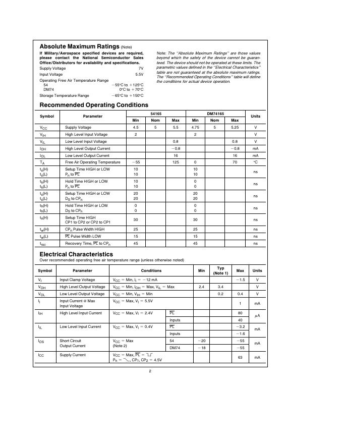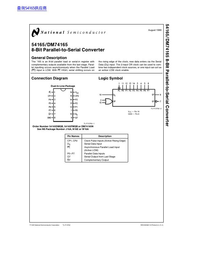 National Semiconductor 54165/DM74165 8-Bit Parallel-to-Serial Converter 数据手册.pdf