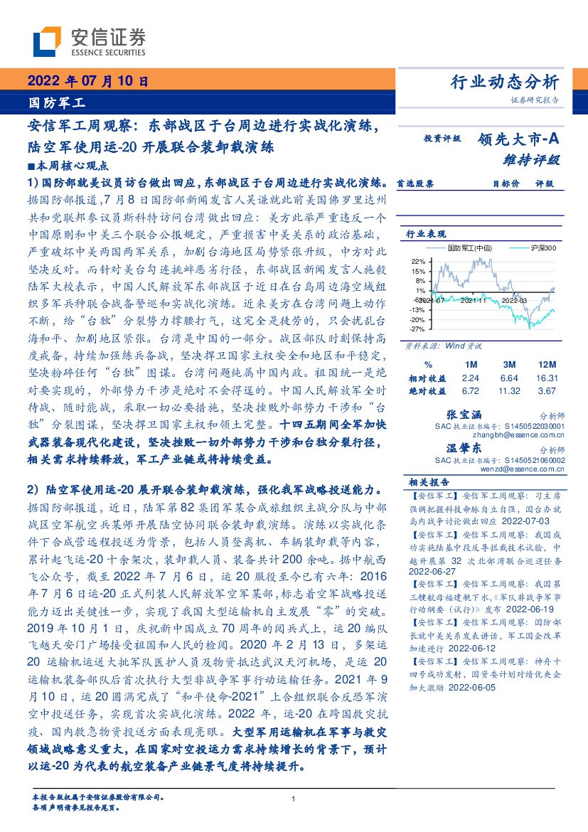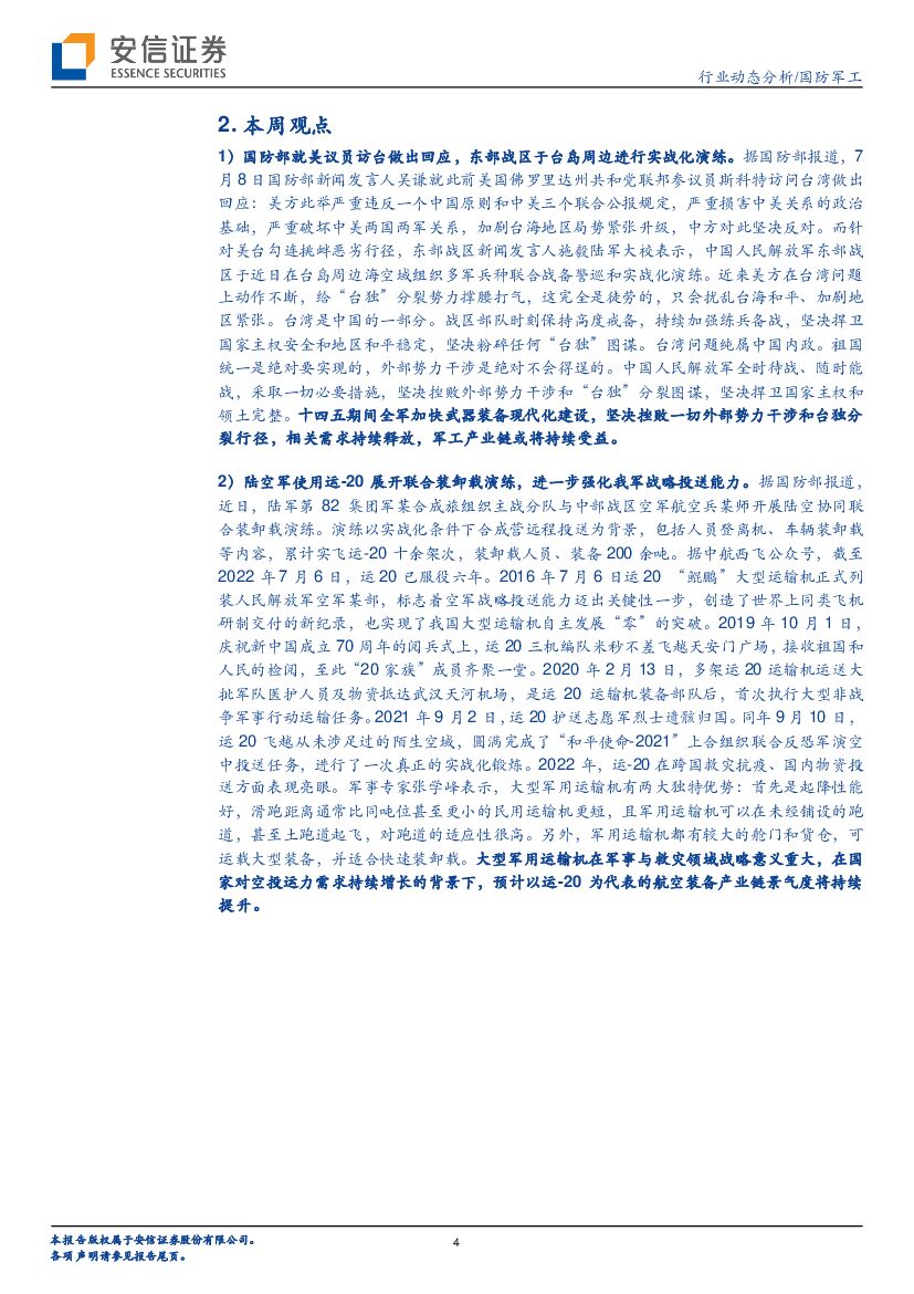 安信证券:安信军工周观察:东部战区于台周边进行实战化演练,陆空军使用运-20开展联合装卸载演练.pdf