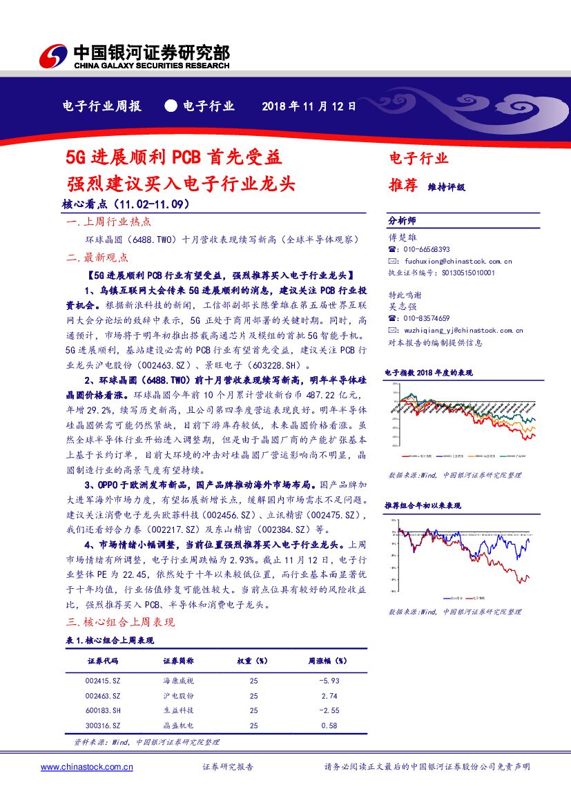中国银河:电子行业周报:5G进展顺利PCB首先受益 强烈建议买入电子行业龙头.pdf