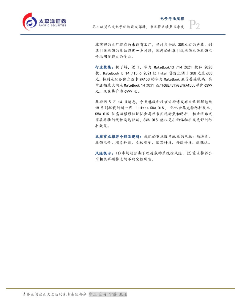 太平洋证券:电子设备、仪器和元件行业周报:芯片缺货已成电子制造最大掣肘,市况将延续至三季度.pdf