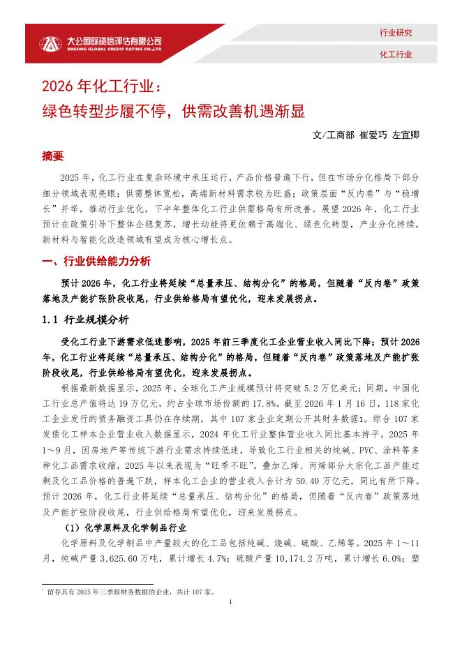 大公国际:2026年化工行业:绿色转型步履不停,供需改善机遇渐显.pdf