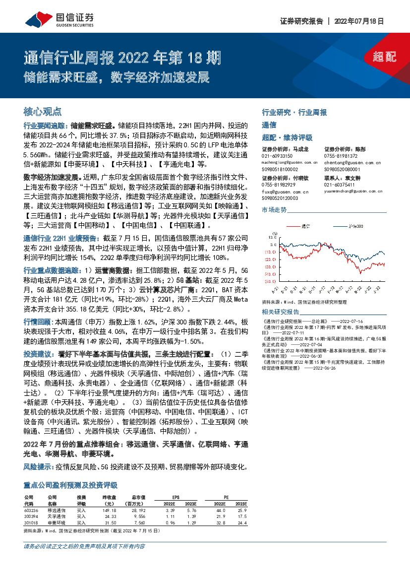 国信证券:通信行业周报2022年第18期:储能需求旺盛,数字经济加速发展.pdf