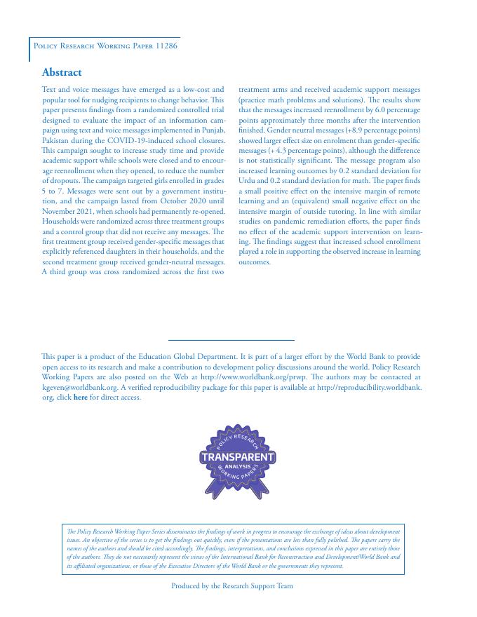 世界银行:大规模推动:巴基斯坦旁遮普省学校停课期间政府短信活动的证据(英文版).pdf