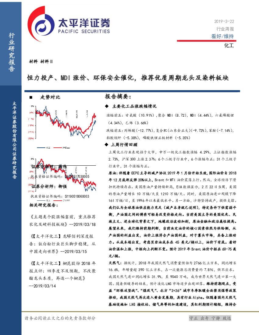 太平洋证券:化工行业周报:恒力投产、MDI涨价、环保安全催化,推荐优质周期龙头及染料板块.pdf