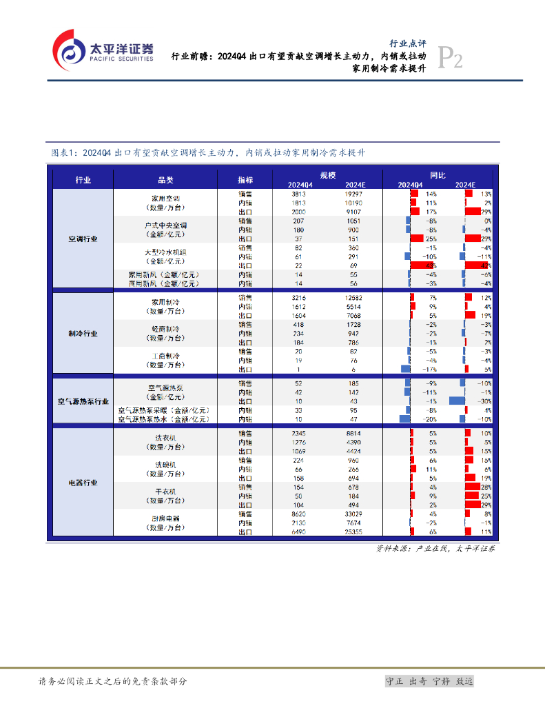 太平洋证券:家电行业前瞻:2024Q4出口有望贡献空调增长主动力,内销或拉动家用制冷需求提升.pdf