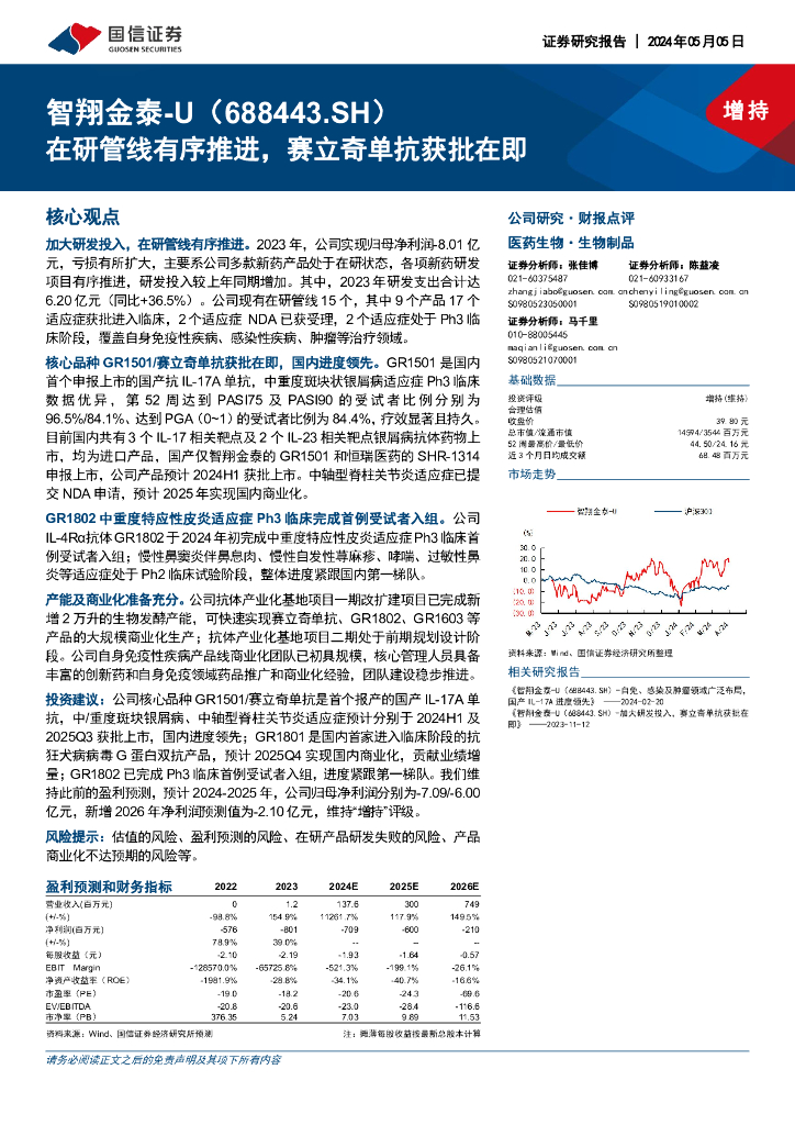 国信证券:智翔金泰(688443)-在研管线有序推进,赛立奇单抗获批在即.pdf
