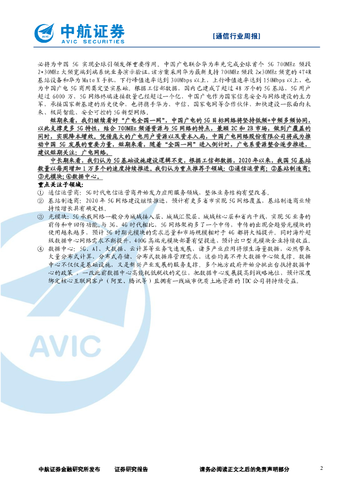 中航证券:通信行业周报:华为打造5G精品网,加速智慧广电落地.pdf