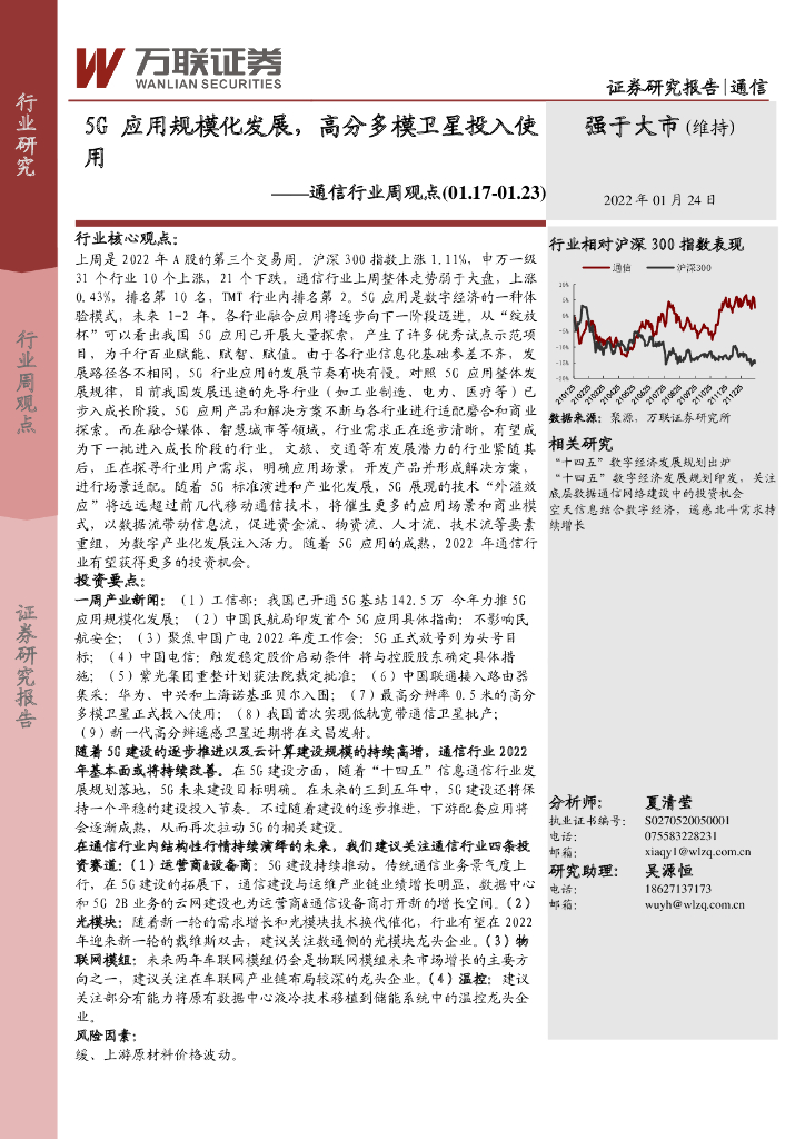 万联证券:通信行业周观点:5G应用规模化发展,高分多模卫星投入使用.pdf