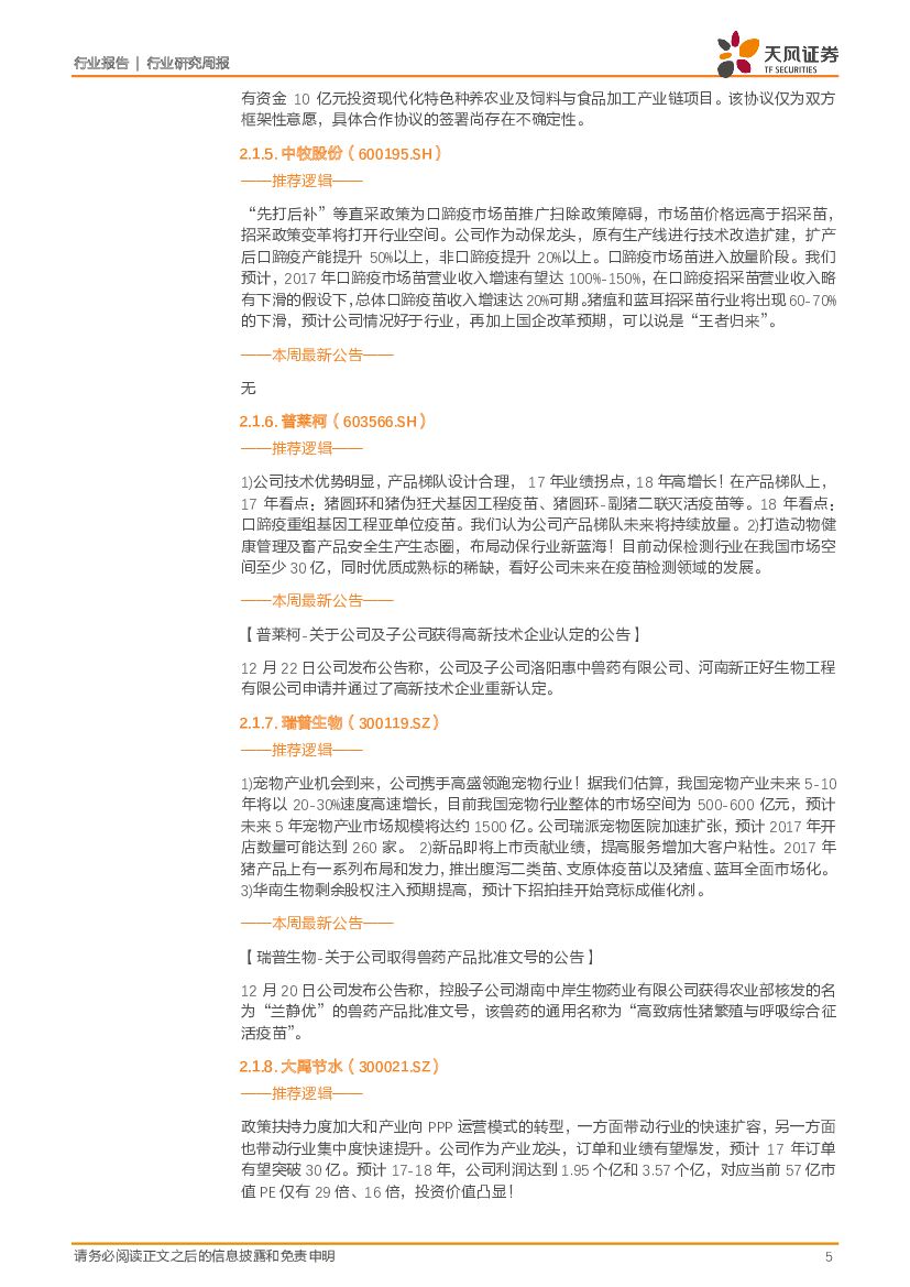 天风证券:农林牧渔行业2017年第52周周报:规模化养殖造就疫苗龙头赛道,生物强者恒强、中牧接棒抢跑!.pdf