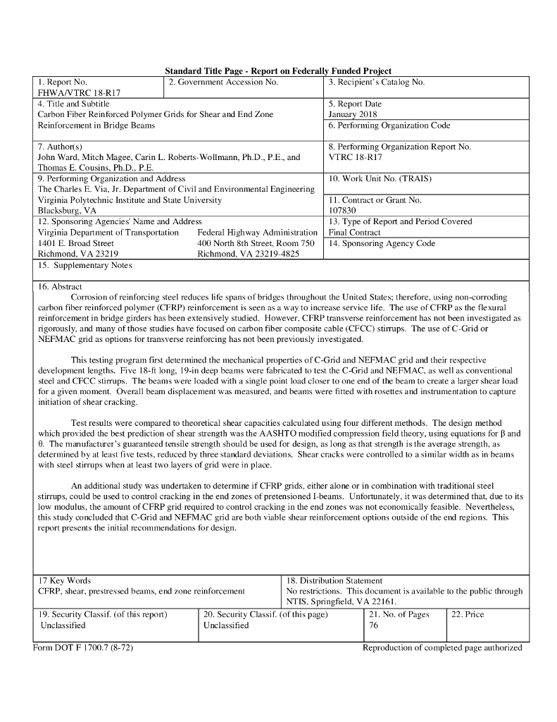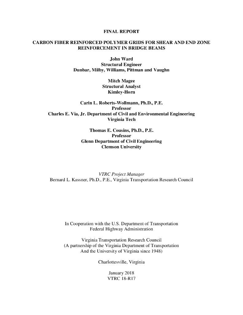 VTTI:2018年用于桥梁抗剪和端区加固的碳纤维增强聚合物网格报告(英文版).pdf