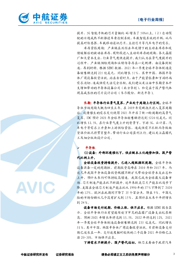 中航证券:电子行业周报:IC Insights上调今年半导体产值成长预估,半导体长期投资逻辑稳固.pdf