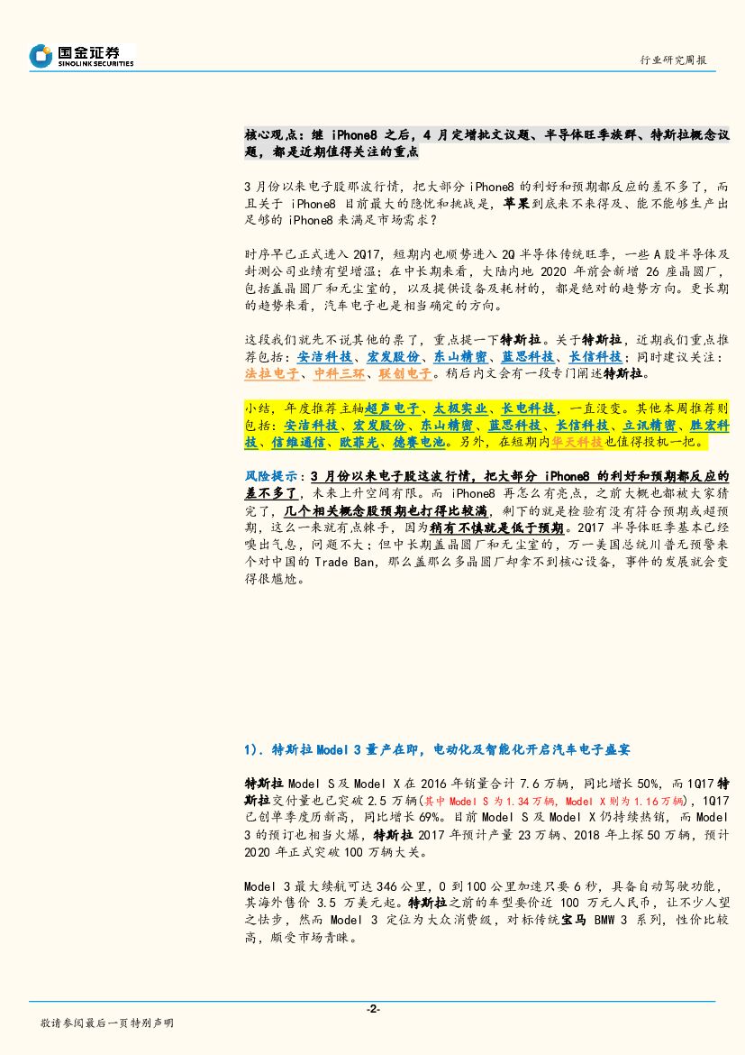 国金证券:电子行业研究周报:继iPhone8后,4月定增批文、半导体旺季、特斯拉概念,都是近期重点.pdf