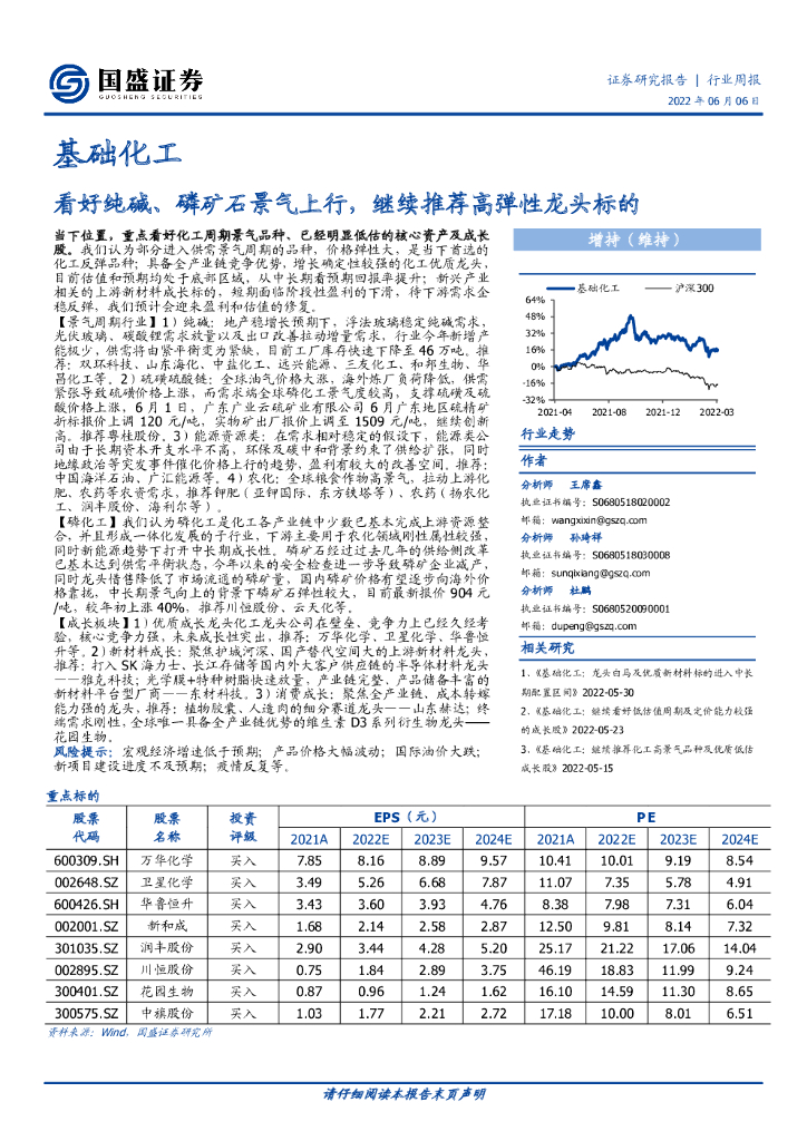 国盛证券:基础化工行业周报:看好纯碱、磷矿石景气上行,继续推荐高弹性龙头标的.pdf