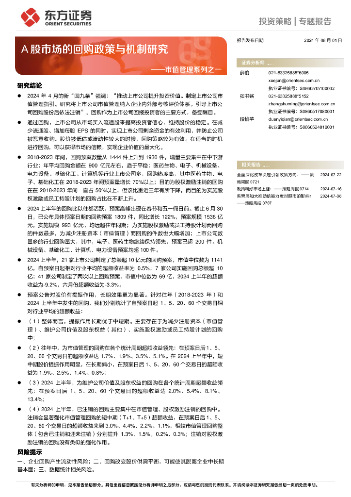东方证券:市值管理系列之一:A股市场的回购政策与机制研究.pdf