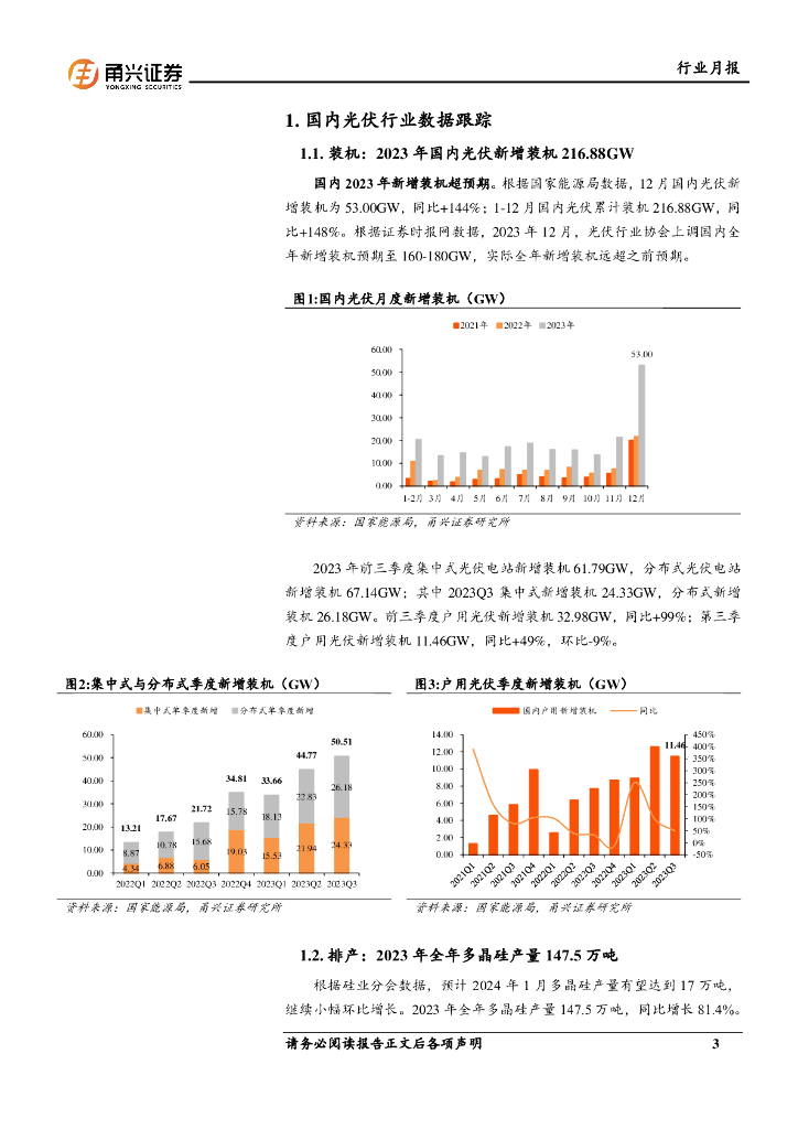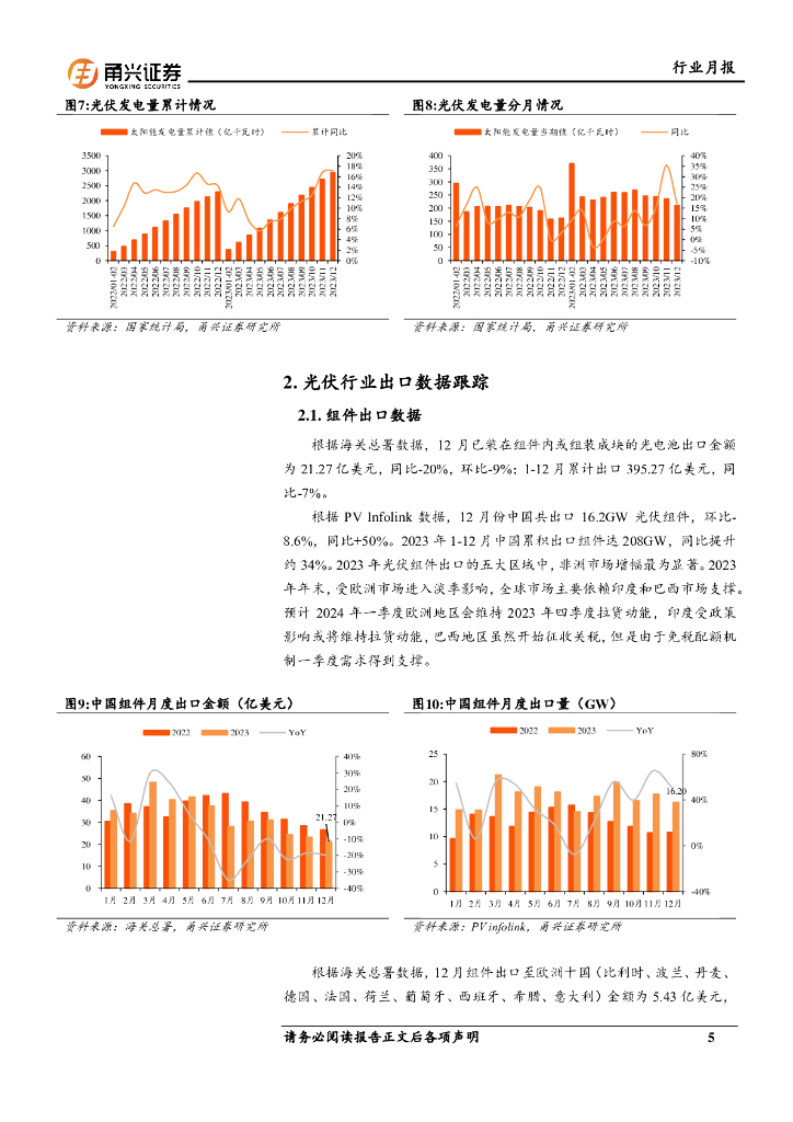 甬兴证券:光伏行业月报:受年末淡季影响,组件出口环比下降.pdf