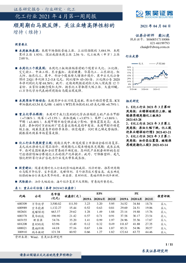 东吴证券:化工行业2021年4月第一周周报:顺周期白马股反弹,关注业绩高弹性标的.pdf