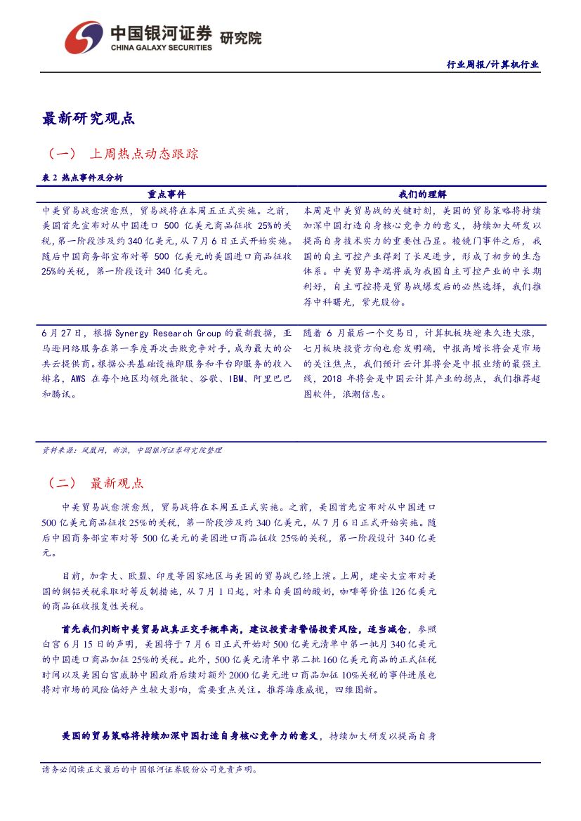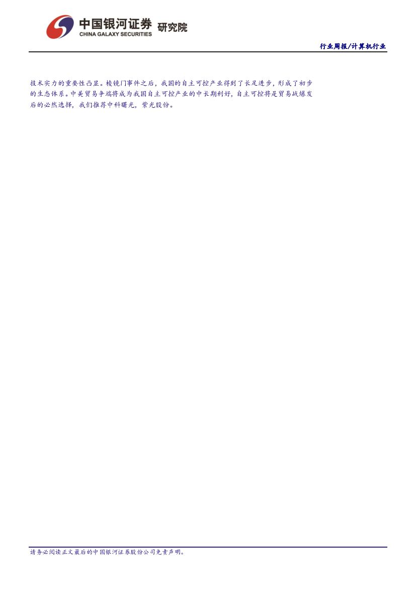 中国银河:计算机行业周报:中美贸易战愈演愈烈,打造核心竞争力意义凸显.pdf