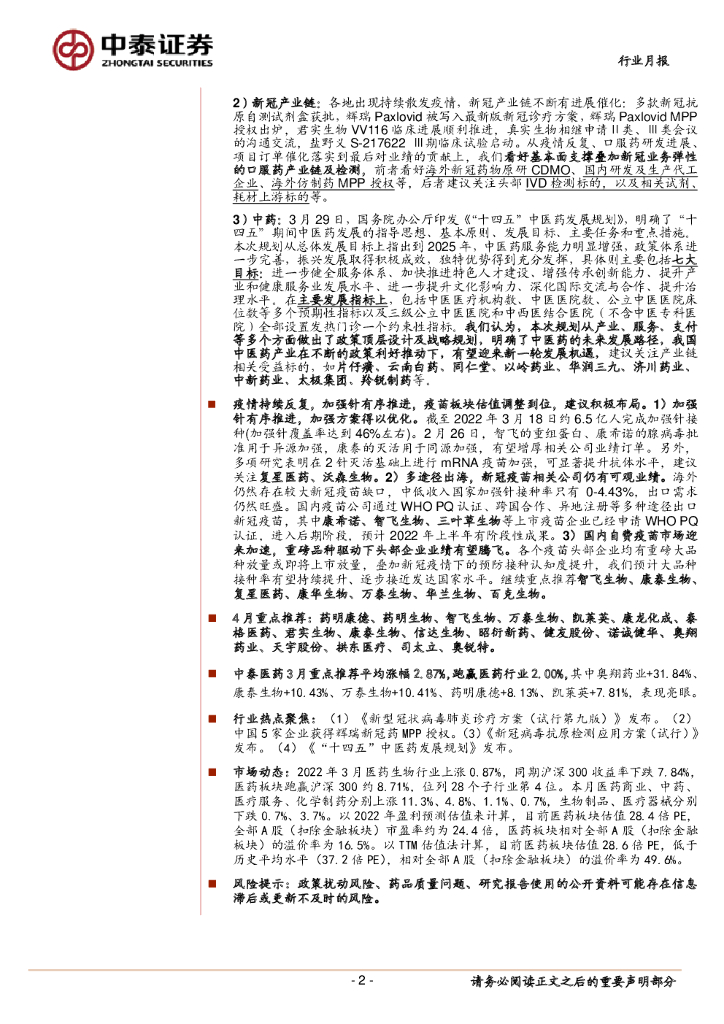 中泰证券:医药生物行业4月月报:一季报窗口叠加疫情催化,看好医药行情延续.pdf