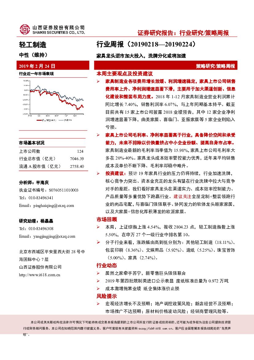山西证券:轻工制造行业周报:家具龙头逆市加大投入,洗牌分化或将加速.pdf