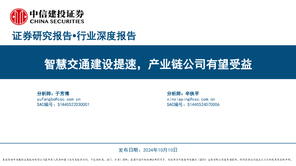 中信建投证券:智慧交通行业深度报告:智慧交通建设提速,产业链公司有望受益.pdf