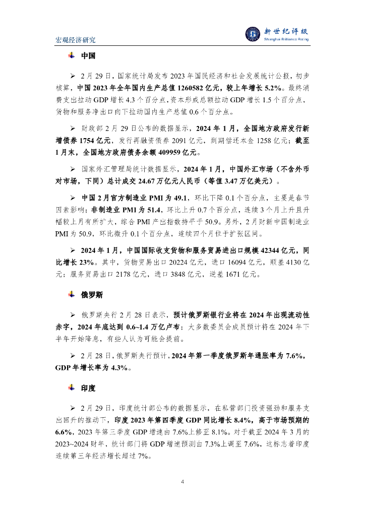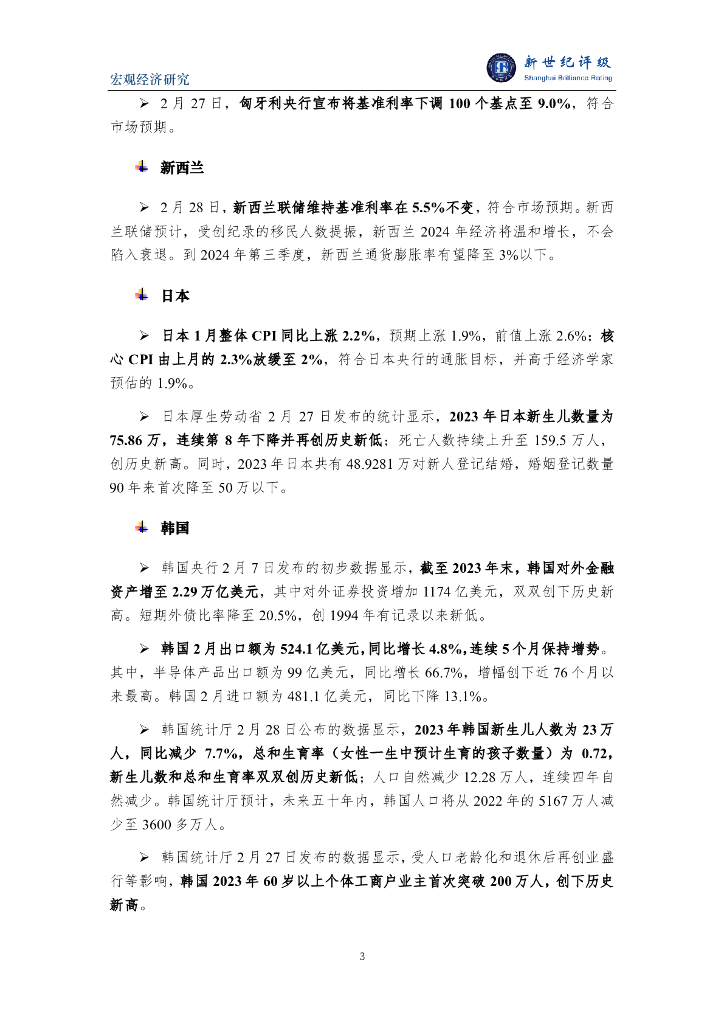 新世纪评级:印度经济增速超预期 日韩新生儿数量创新低——全球宏观经济周报(2024/2/24-3/1).pdf
