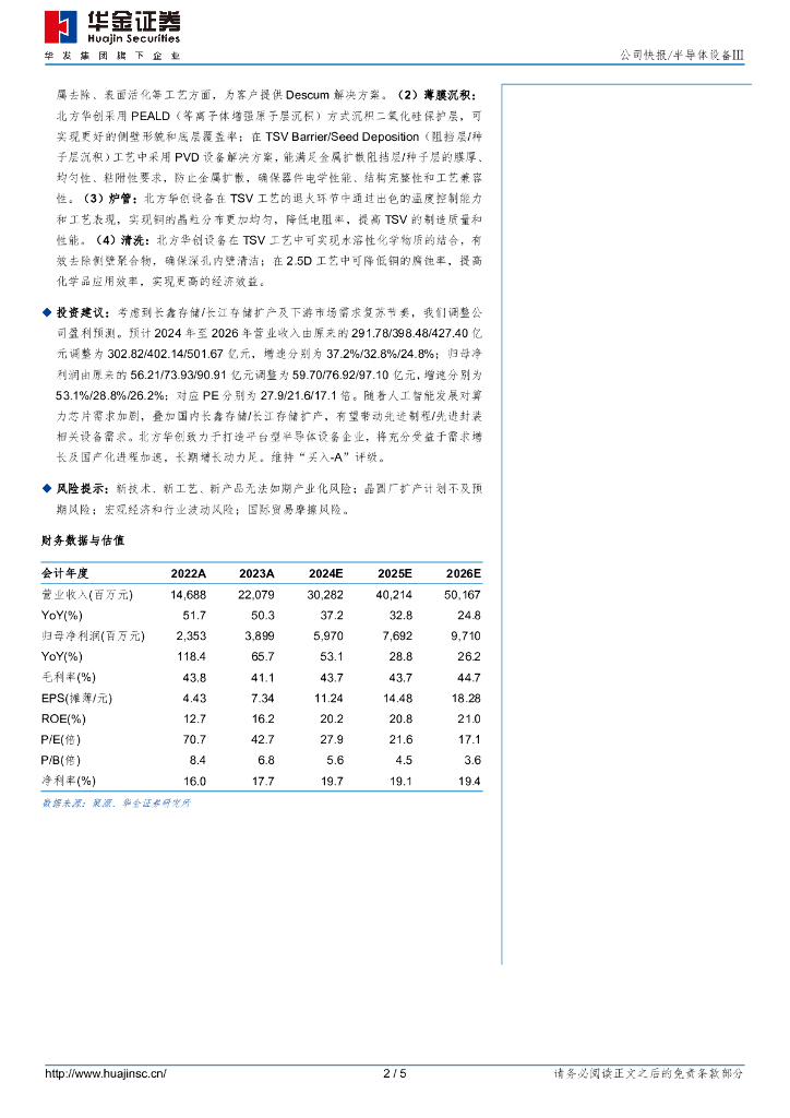 华金证券:北方华创(002371)-24H1预计归母净利润同增超40%,平台型企业助力先进封装产业腾飞.pdf