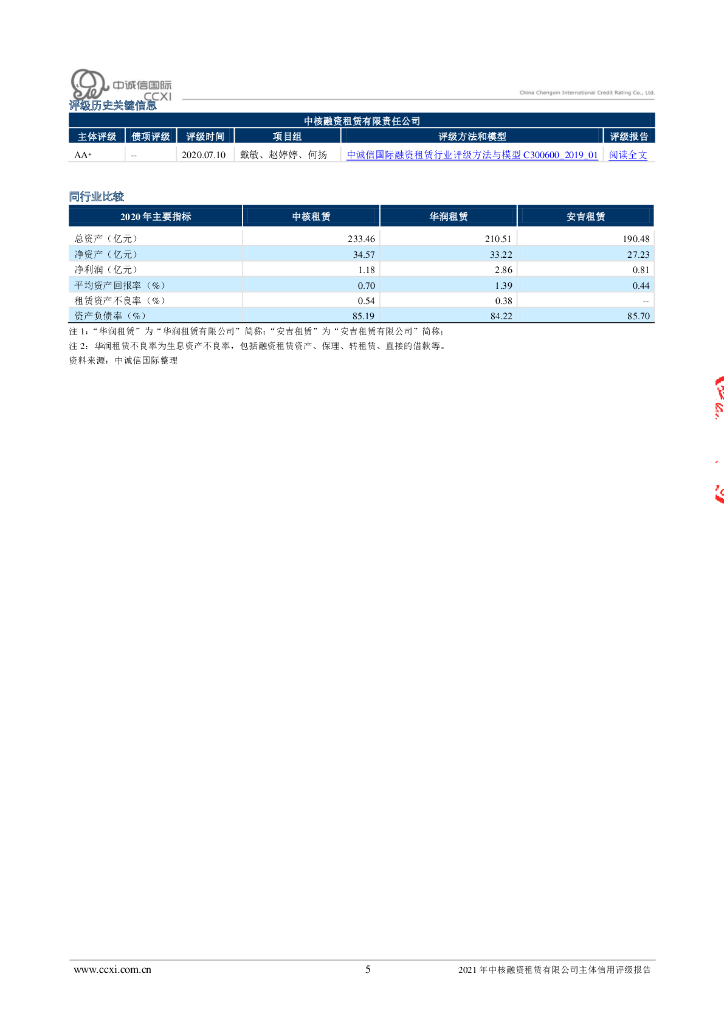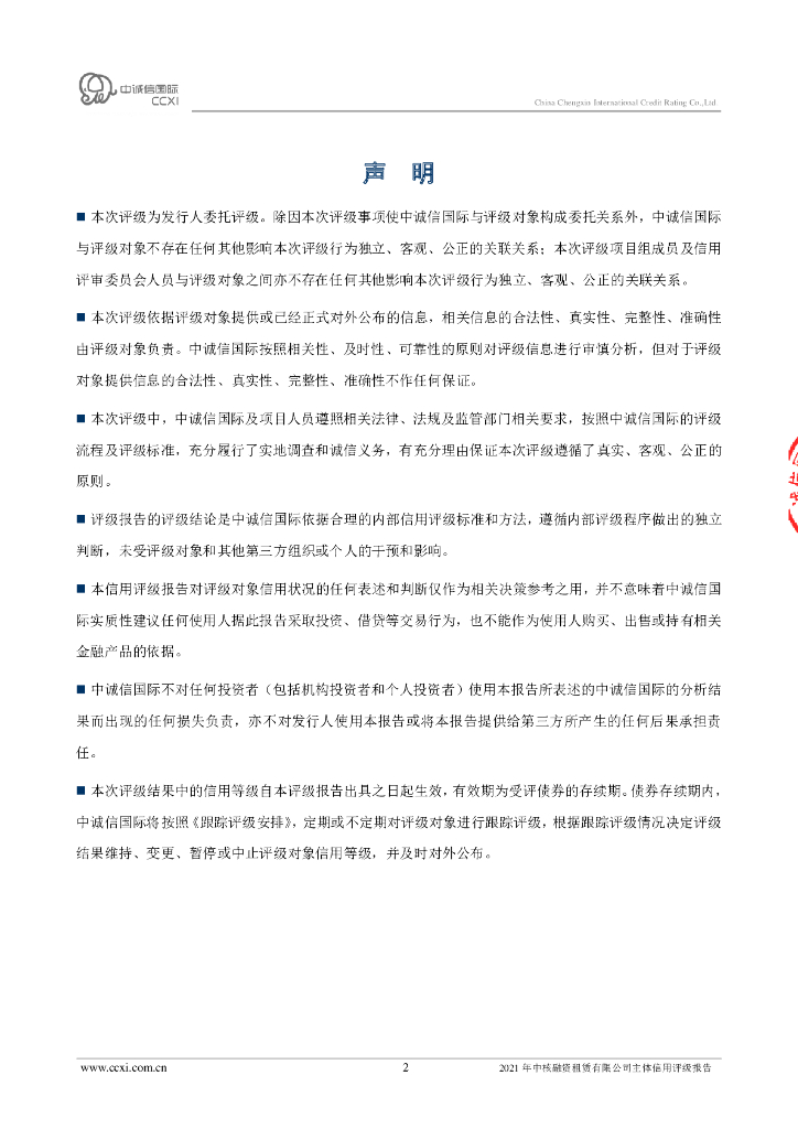 中诚信:2021年中核融资租赁有限公司主体信用评级报告.pdf