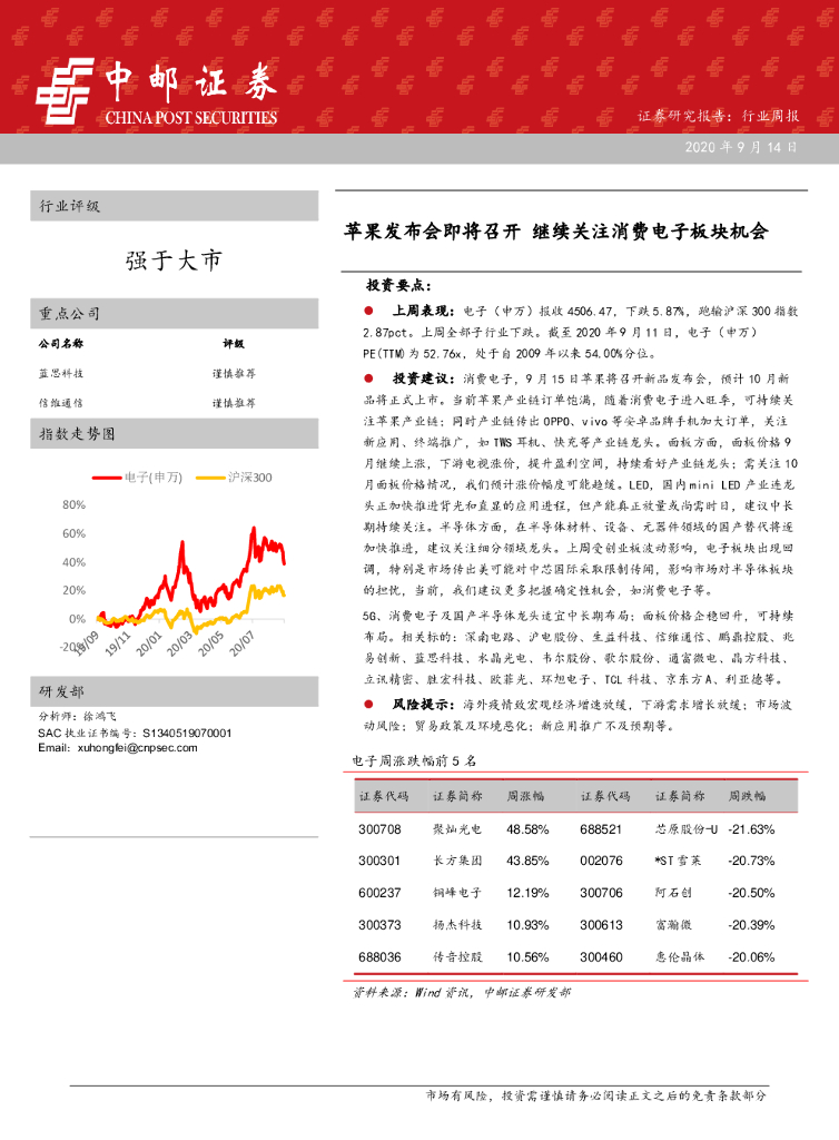 中邮证券:电子行业周报:苹果发布会即将召开 继续关注消费电子板块机会.pdf