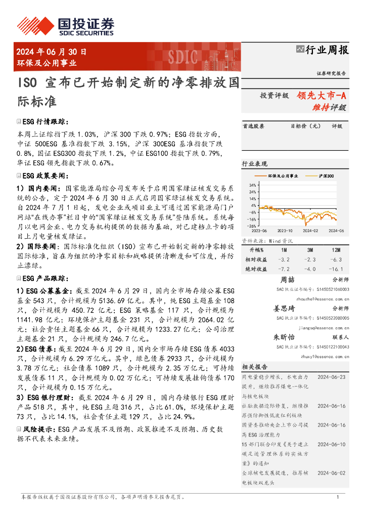 国投证券:环保及公用事业行业周报:ISO宣布已开始制定新的净零排放国际标准.pdf
