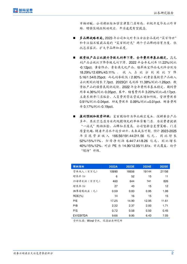 国海证券:菜百股份(605599)-2022年年报&2023年一季报点评:贵金属投资产品高增,2023Q1业绩超市场预期.pdf